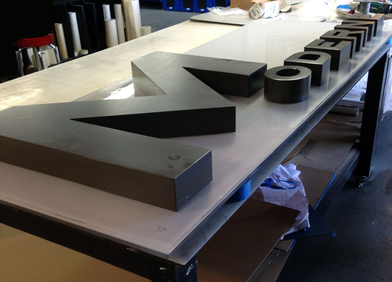 Non-lit channel letters were mounted to edge-lit 3form to create a shadow effect on a glowing panel. The 3form panels were then attached to the main monument structure with standoff bolts to bring the initial concept to life.