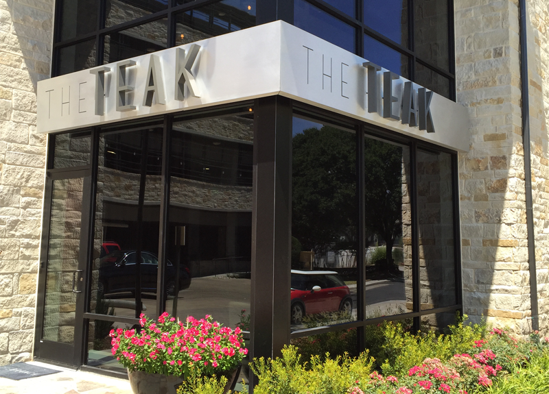 The Teak is a multifamily development in Dallas, TX. There are three exterior signs in this project. A leasing office awning and two blade signs.