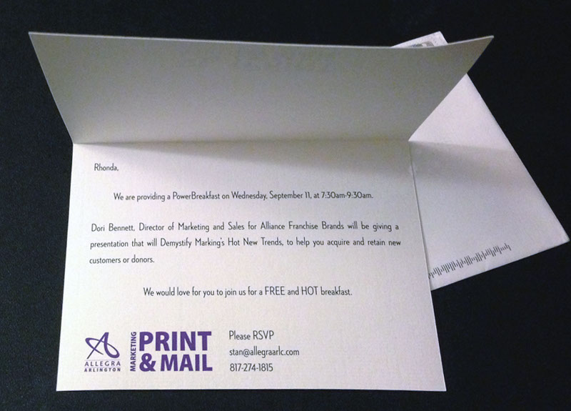 Allegra wanted their clients know that they offer marketing services as well as print materials. Initially, they wanted to host a lunch-and-learn but their speaker would only be available for morning engagements. They came to me for a solution.